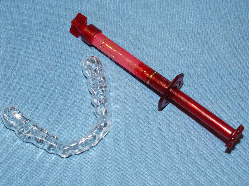 Nach der oberflächlichen Reinigung und Politur aller Zähne sollte das Bleaching anschließen. Nur über das Bleaching können auch die Verfärbungen aus den tieferen Zahnschichten herausgelöst werden. In der Regel arbeiten wir mit dem Homebleaching-Verfahren. Hierfür erhalten Sie nach Anfertigung einer speziellen Trägerschiene das Bleichgel und können in der Heimanwendung über Nacht, die Zähne über einen Zeitraum von ca. 7-10 Tagen aufhellen. Hierbei können Sie das Behandlungsergebnis selber steuern und es ist durch die sanfte Aufhellung nicht mit Überempfindlichkeiten zu rechnen.