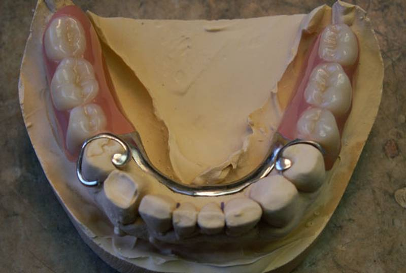 Die einfachste und kostengünstigste Variante; nur die fehlenden Zähne werden ersetzt, der Halt durch Modellgußklammern an den vorhandenen Zähnen gewährleistet (Hirschgeweih). Die seitliche Kraftübertragung auf die Zähne ist statisch aber ungünstig und fördert den Knochenabbau um den Haltezahn und damit die zunehmende Lockerung des Zahnes.