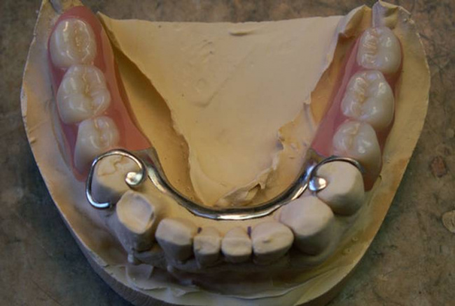 Die einfachste und kostengünstigste Variante; nur die fehlenden Zähne werden ersetzt, der Halt durch Modellgußklammern an den vorhandenen Zähnen gewährleistet (Hirschgeweih). Die seitliche Kraftübertragung auf die Zähne ist statisch aber ungünstig und fördert den Knochenabbau um den Haltezahn und damit die zunehmende Lockerung des Zahnes.